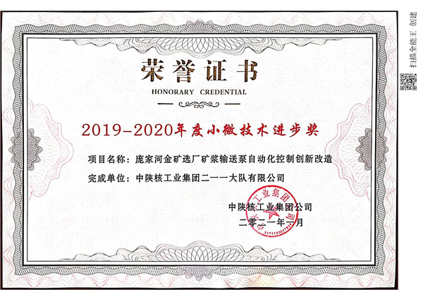 • 2019—2020年度科技項目優秀成果三等獎